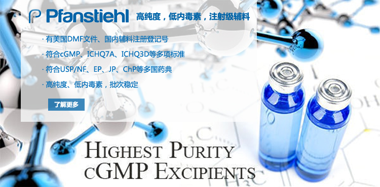 “熱烈祝賀Pfanstiehl的注射級甘氨酸Glycine(G-140)喜獲CDE登記號F20250000403, 這是Pfanstiehl產品獲得的第18個CDE登記號!”甘氨酸在醫藥輔料制劑中應用廣泛,, 可作為緩沖劑,增溶劑,穩定劑等,具有諸多優勢。Pfanstiehl秉承一貫高品質理念,為滿足全球生物制藥行業對于高品質甘氨酸的需求,隆重推出的注射級甘氨酸Glycine (G-140), 具有超高純度,超低內毒素,超低金屬殘留的特點,單獨檢測29種金屬離子,并且新增DNA,RNA,DNA酶,RNA酶和脂肪酶,亞硝酸鹽等多項質量指標的檢測,符合多國藥典規定(USP, EP, BP, JPE, ChP),可用于生物治療性藥物和疫苗的生產。產品信息:· 產品名稱:Glycine, High Purity, Low Endotoxin, Low Metals, USP, EP, BP, JPE, ChP (G-140)· 中文名稱:甘氨酸· 分子式:C2H5NO2· 分子量:75.07 g / mol· CAS號:56-40-6· 產品貨號:G-140產品特點: · 超高純度,超低內毒素,超低微生物含量,超低金屬雜質殘留· 質量指標新增DNA,RNA,DNA酶,RNA酶,脂肪酶和亞硝酸鹽檢測· 符合多國藥典:USP, EP, BP, JPE, ChP· 符合ICH Q3D標準· 符合GMP標準· 已獲DMF和CDE登記號 產品應用:· 緩沖劑· 穩定劑· 增溶劑如果您對Pfanstiehl注射級別Glycine G-140感興趣,歡迎聯系Pfanstiehl 中國區代理商北京西美杰科技有限公司獲得如下詳細的產品概況說明文件和測試樣品。Pfanstiehl Inc.最新產品系列如下,歡迎聯系北京西美杰科技有限公司獲取100g裝免費樣品。北京西美杰科技有限公司為Pfanstiehl中國代理,為客戶提供完善的技術支持與售后服務。歡迎撥打西美杰客服電話400-050-4006或者登陸網站www_xmjsci_com.ccc992.com了解更多信息。 更多>